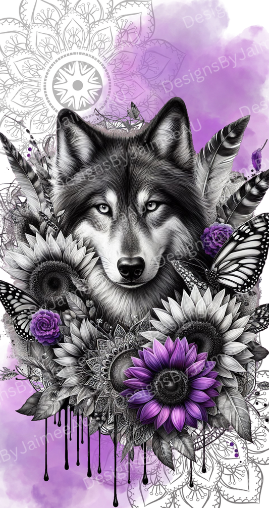 Black and White Wolf with Purple Watercolour Digital Phone Case Design