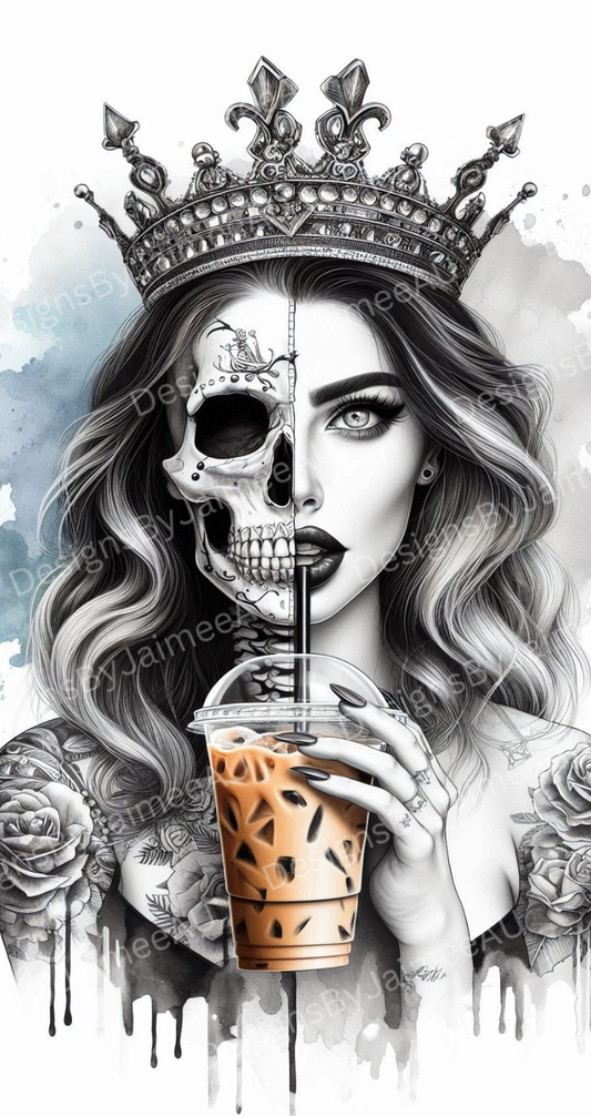 Ice Coffee Queen - Black and White - Digital Phone Case Design