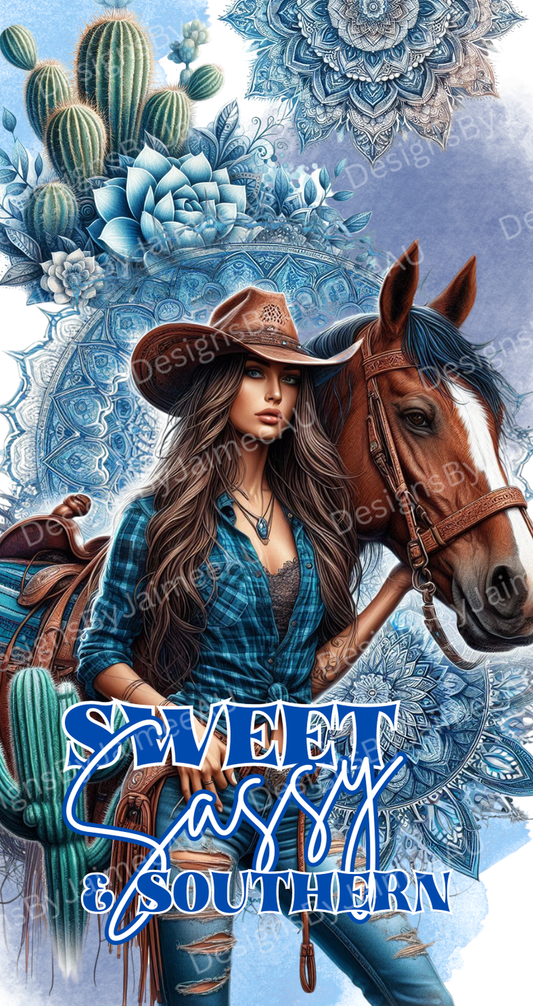 Navy Blue Cowgirl with Horse Country/Western Digital Phone Case Design