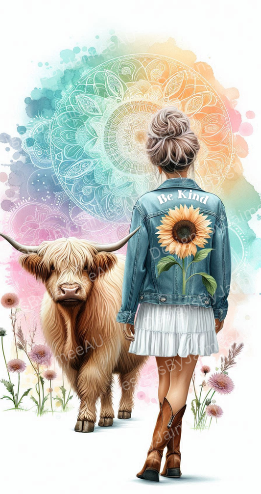 "BE KIND" Pastel Watercolour Daily Affirmations with Highland Cow #1 Digital Phone Case Design