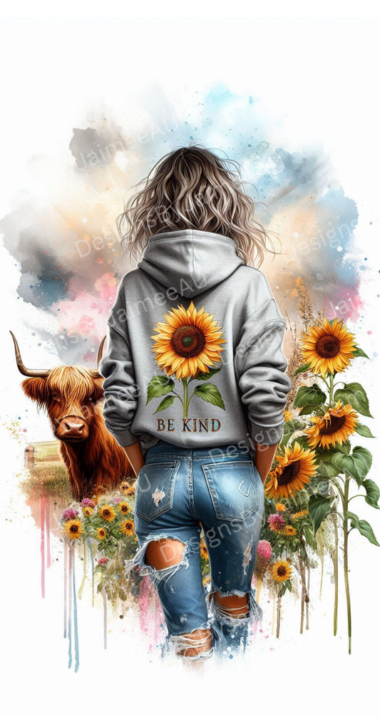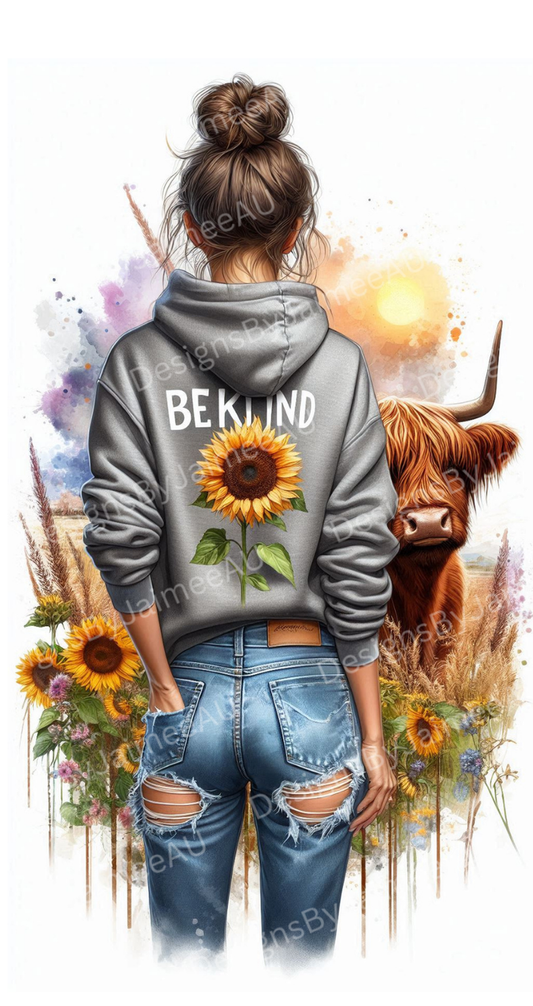 Grey Hoodie "Be Kind" - Daily Affirmations with Watercolour Highland Cow #1 Digital Phone Case Design