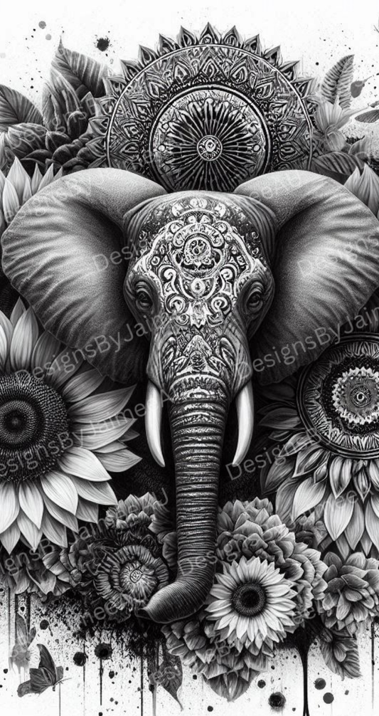 Black and White Elephant Digital Phone Case Design