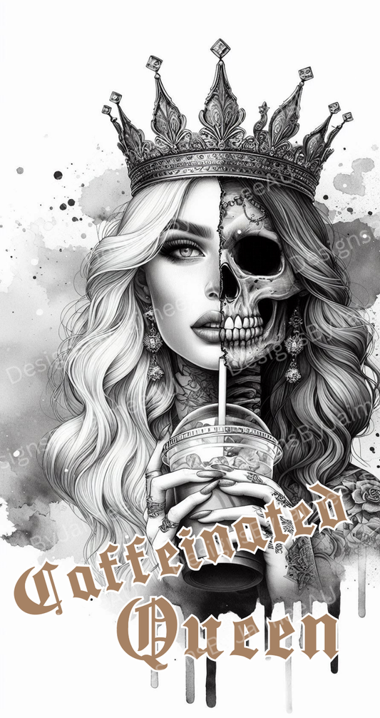 Black and White "Caffeinated Queen" Digital Phone Case Design