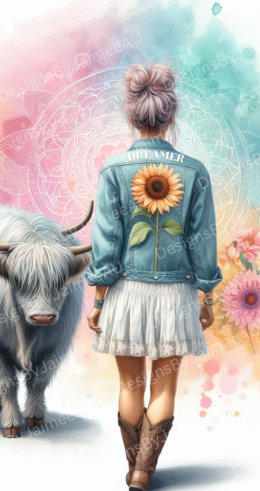 "Dreamer" Pastel Watercolour Daily Affirmations with Highland Cow Digital Phone Case Design