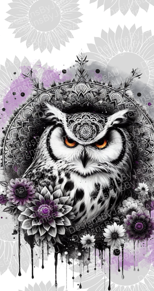 Purple Sunflowers - Black and White Owl Digital Phone Case Design