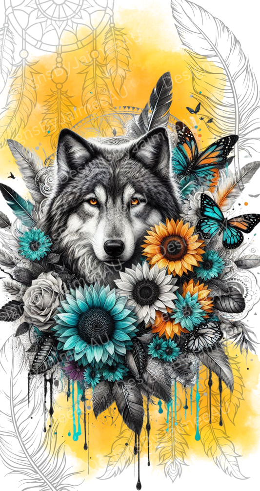 Black and White Wolf with Yellow Watercolour Digital Phone Case Design