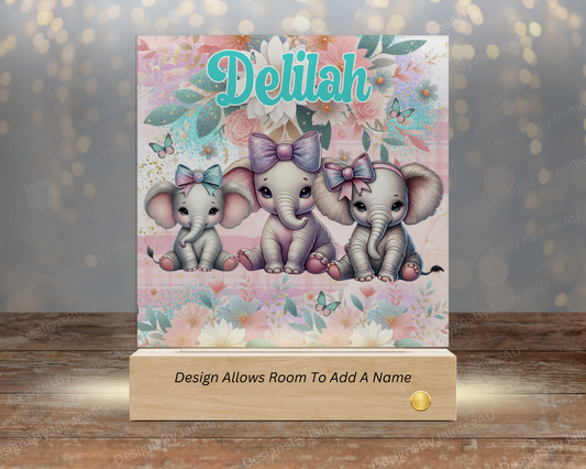 Pastel Baby Elephants - Digital Sublimation Led Light Design