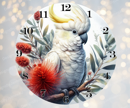 Cockatoo and Aussie Native #8 Digital Sublimation Clock Design