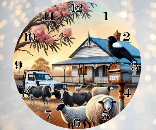 Nostalgic Aussie Farm Digital Sublimation Clock Design