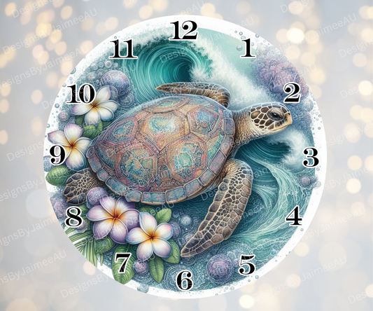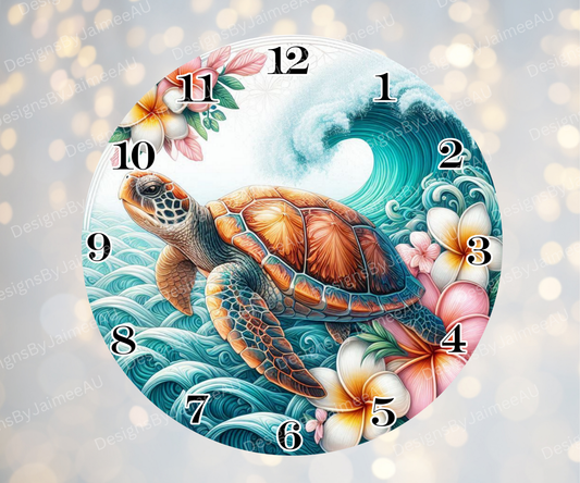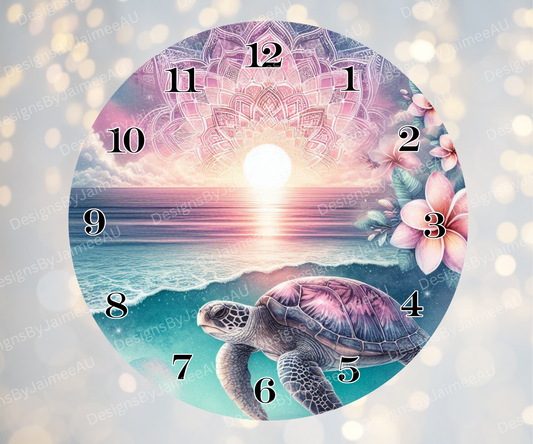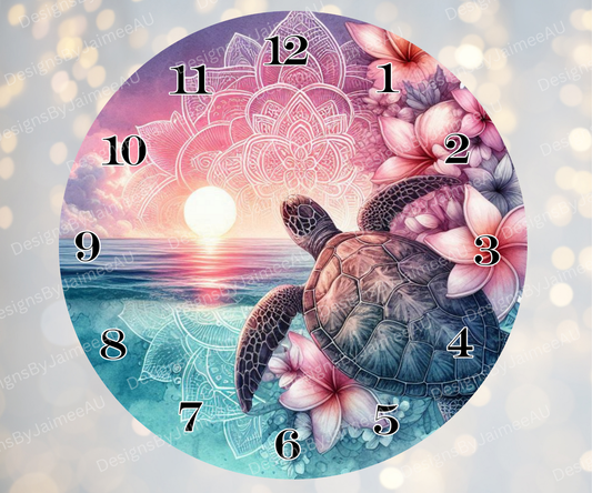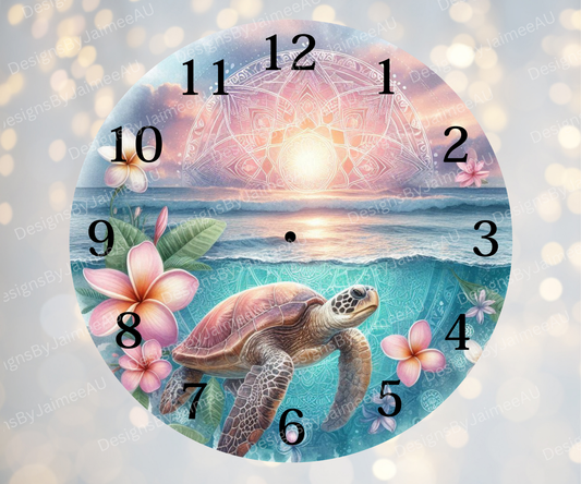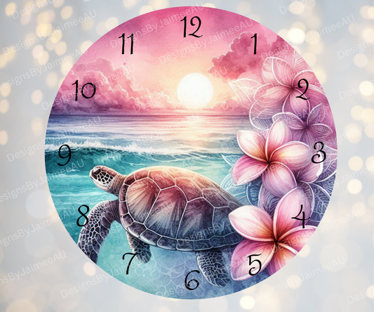 Pink and Aqua Sunset Turtles #1 Digital Sublimation Clock Design