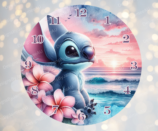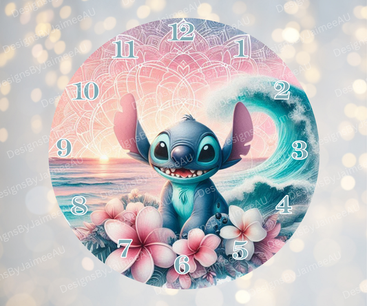 Stitch - Pink and Aqua Sunset #2 Digital Sublimation Clock Design
