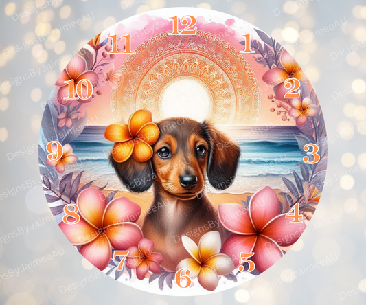 Summer Dachshund #3 Digital Sublimation Clock Design