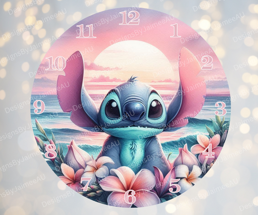Stitch - Pink and Aqua Sunset #1 Digital Sublimation Clock Design