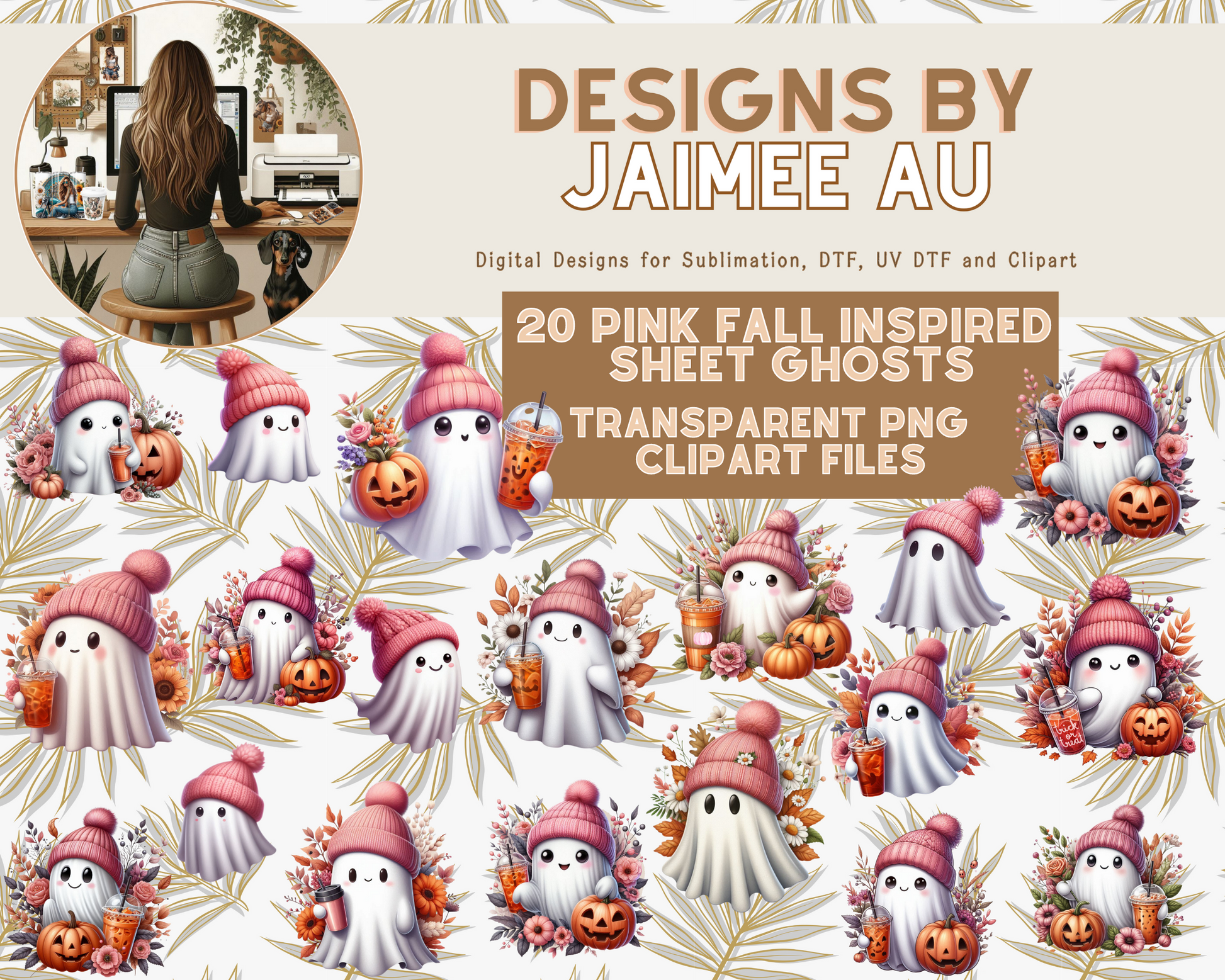 20 Pink Themed Halloween Sheet Ghost Digital Transparent Clipart Images
