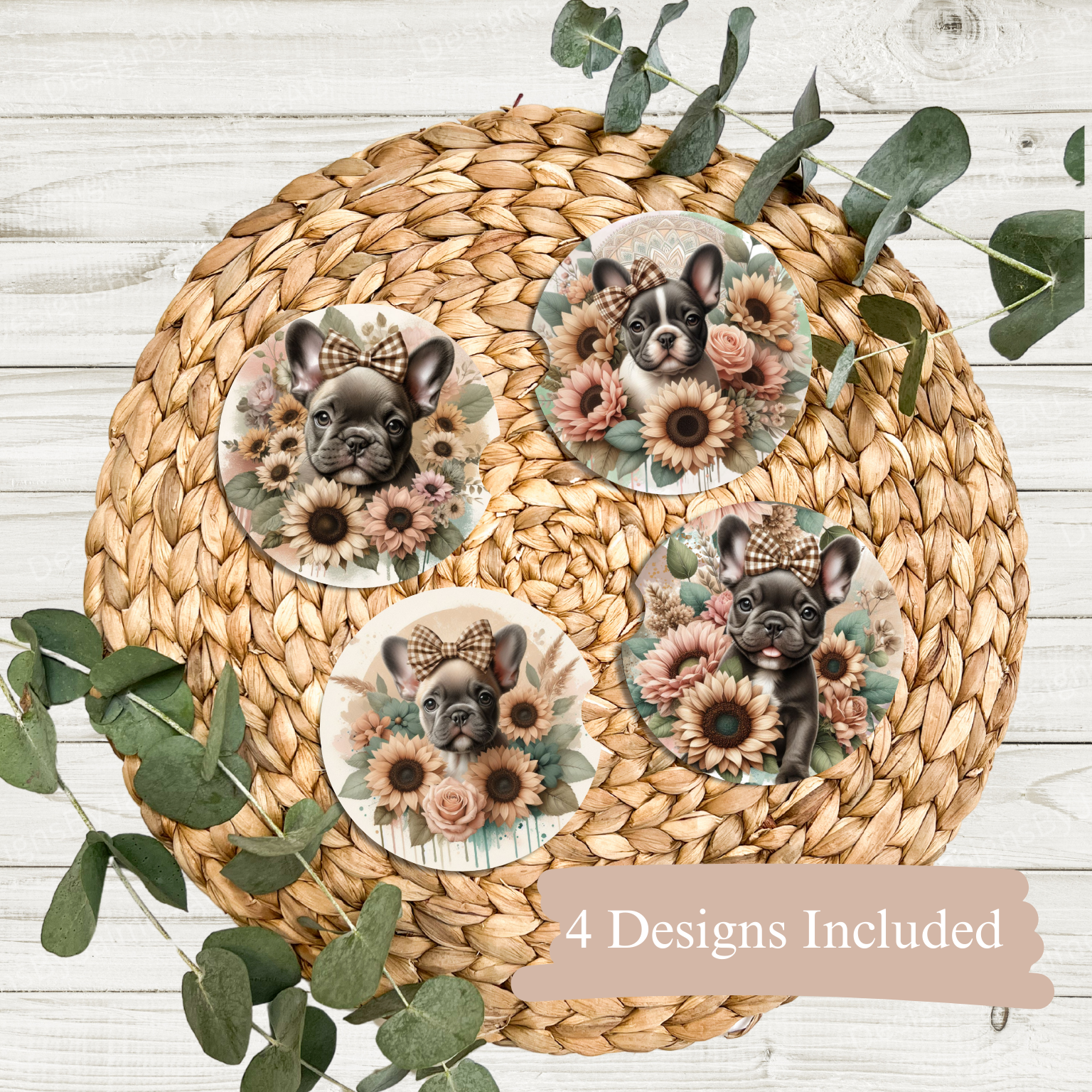 4 Earthy French Bulldog Digital Sublimation Car Coaster Designs