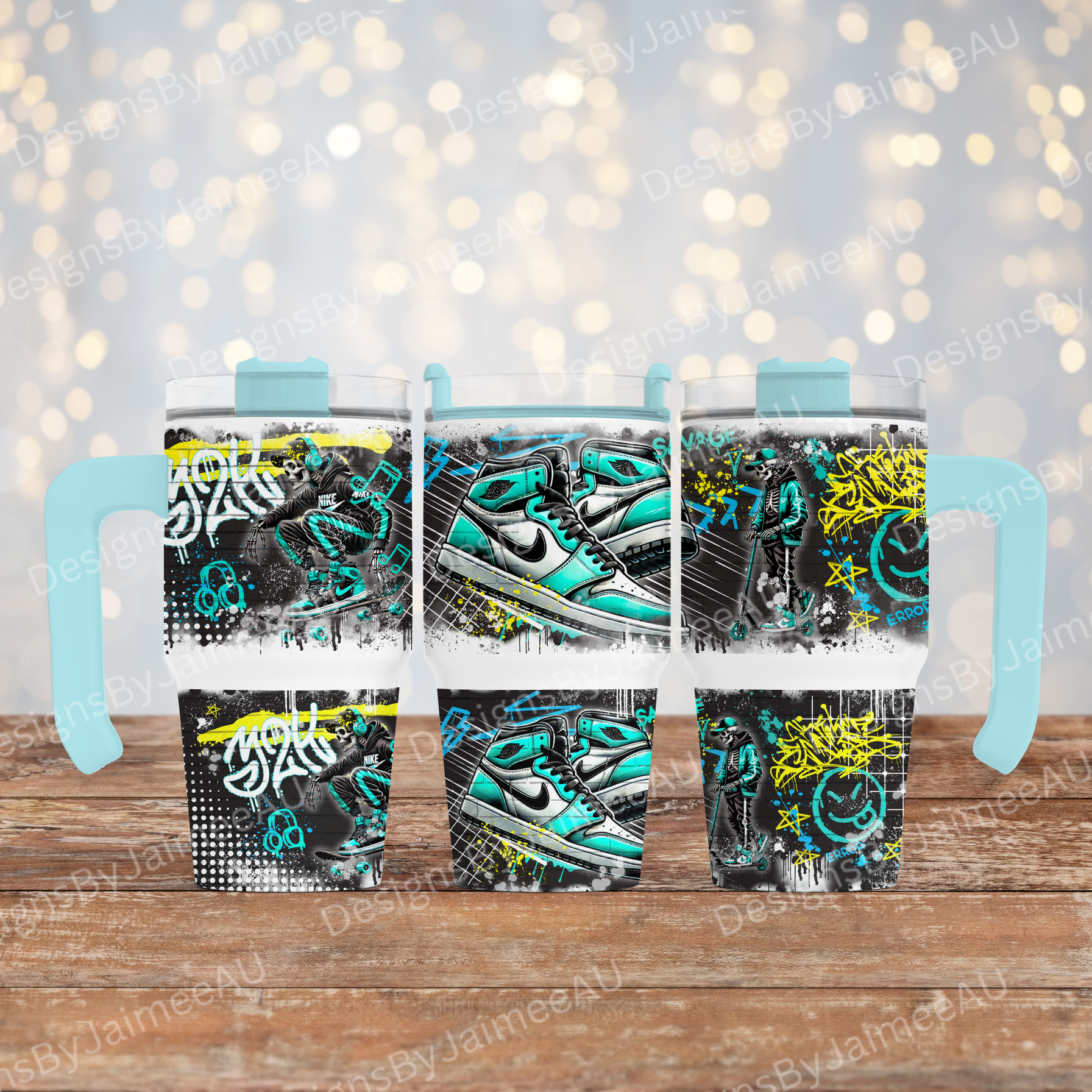 Aqua Graffiti Styled Skeleton- Digital 20oz Tumbler with Handle Wrap Design