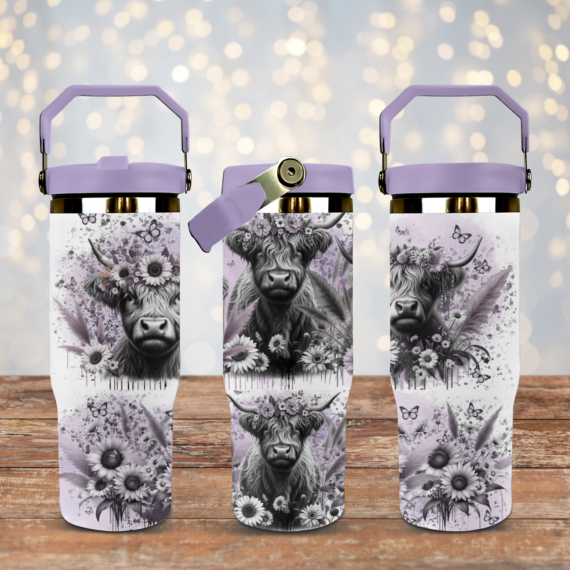 Black and White Highland Cows - Pastel Purple - Digital 30oz Sublimation Tumbler Wrap