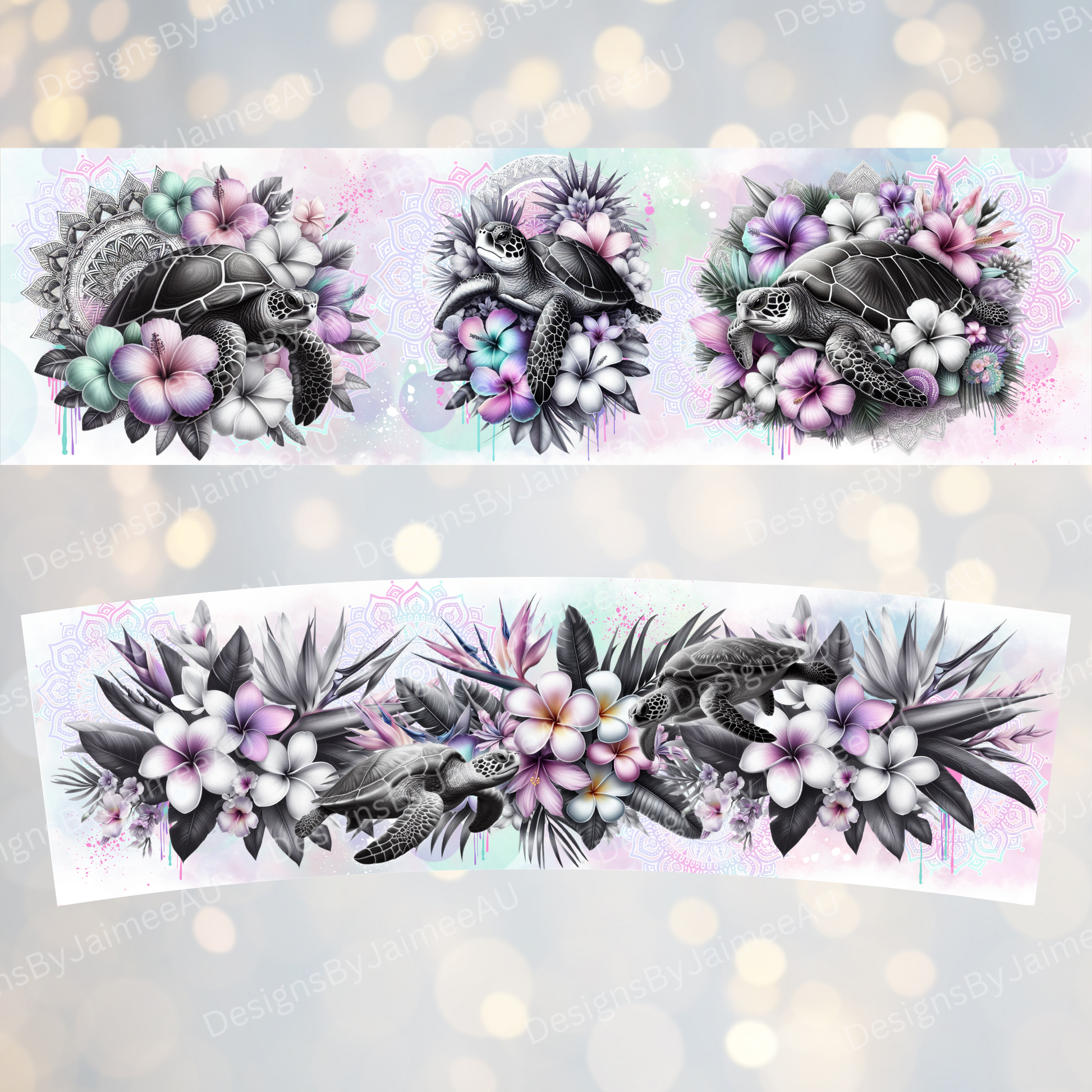 Black and White - Pastel Turtles - Digital 20oz Tumbler with Flip Lid/Handle