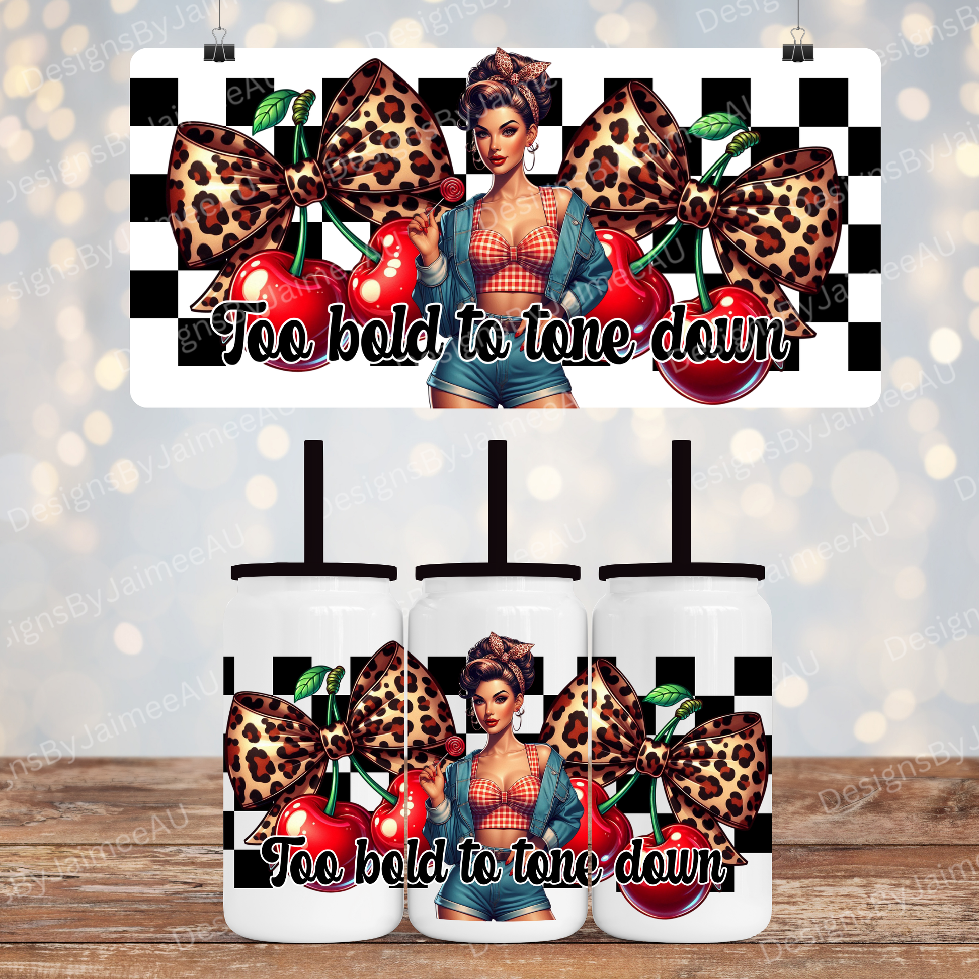 Cherry Girl "Too Bold To Tone Down"- Libbey-Style Stainless Tumblers (16oz)