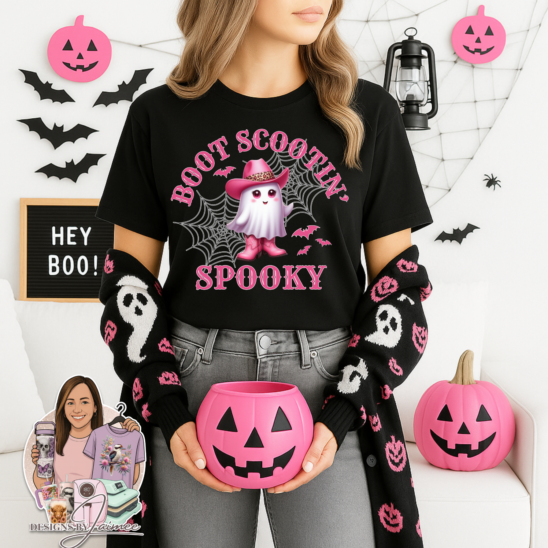 "Boot Scootin' Spooky" Cowgirl Sheet Ghost Digital Download PNG 300dpi DTF Transfer tshirt image