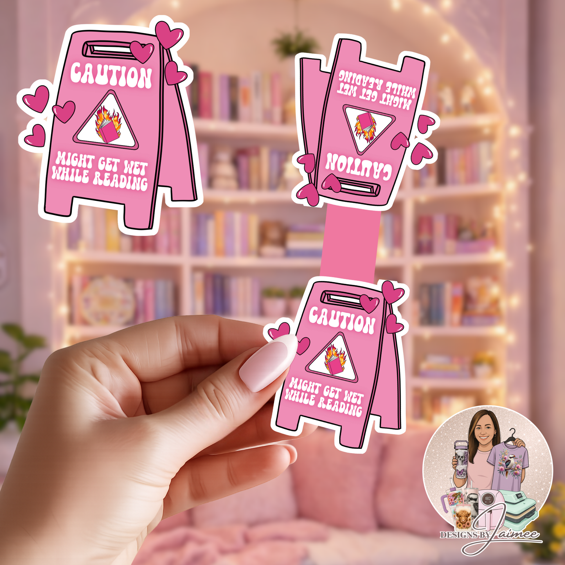 Caution - Might Get Wet While Reading | Magnetic Bookmark | Handmade Bookish Accessory