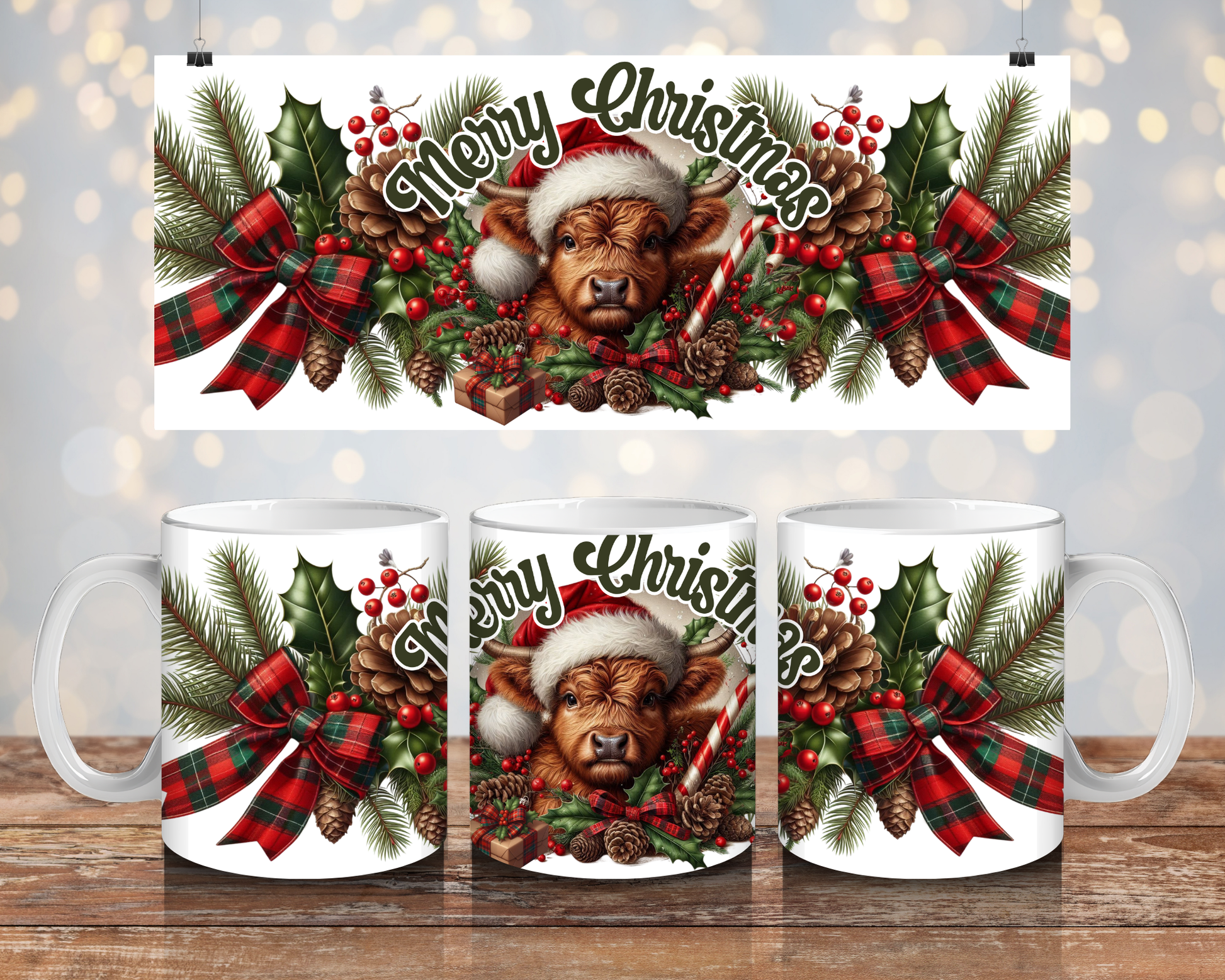 Christmas Highland Cow -Digital 11oz Sublimation Coffee Mug Design