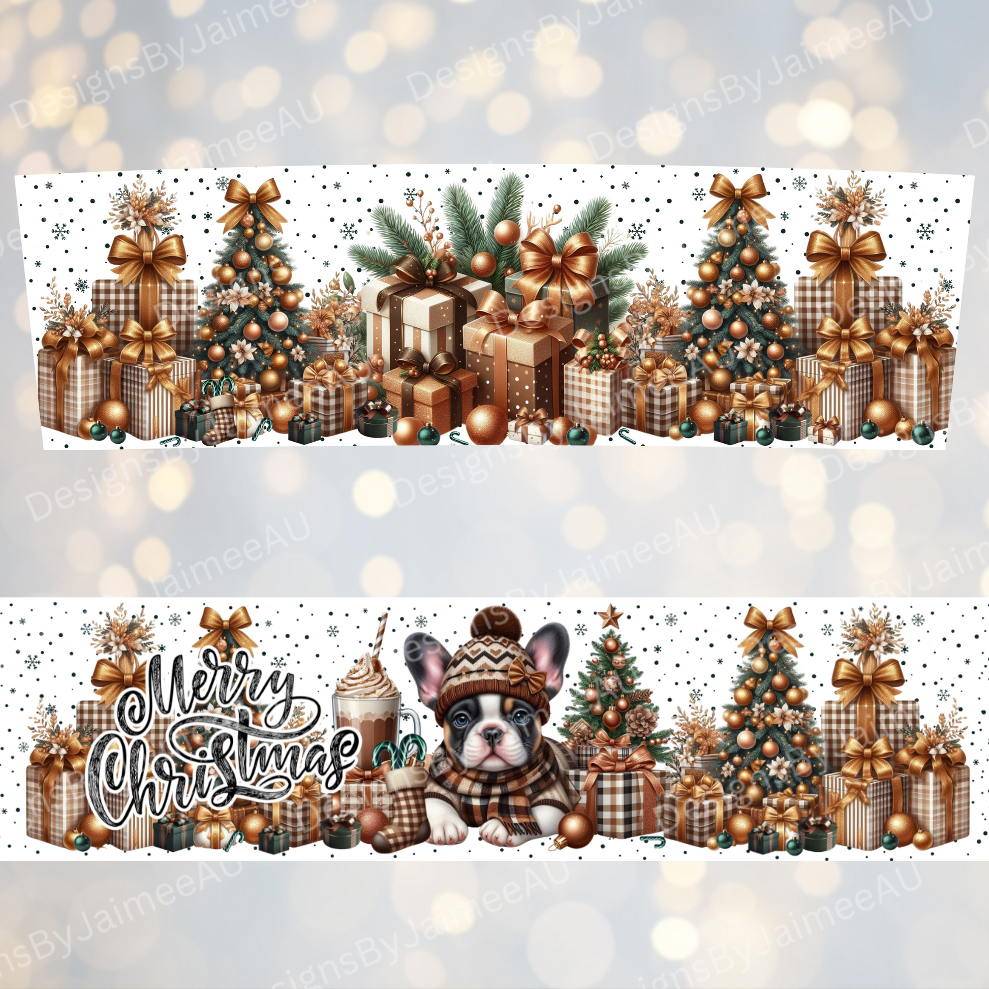Copper Christmas Frenchie - Digital 20oz Tumbler with Handle Wrap Design