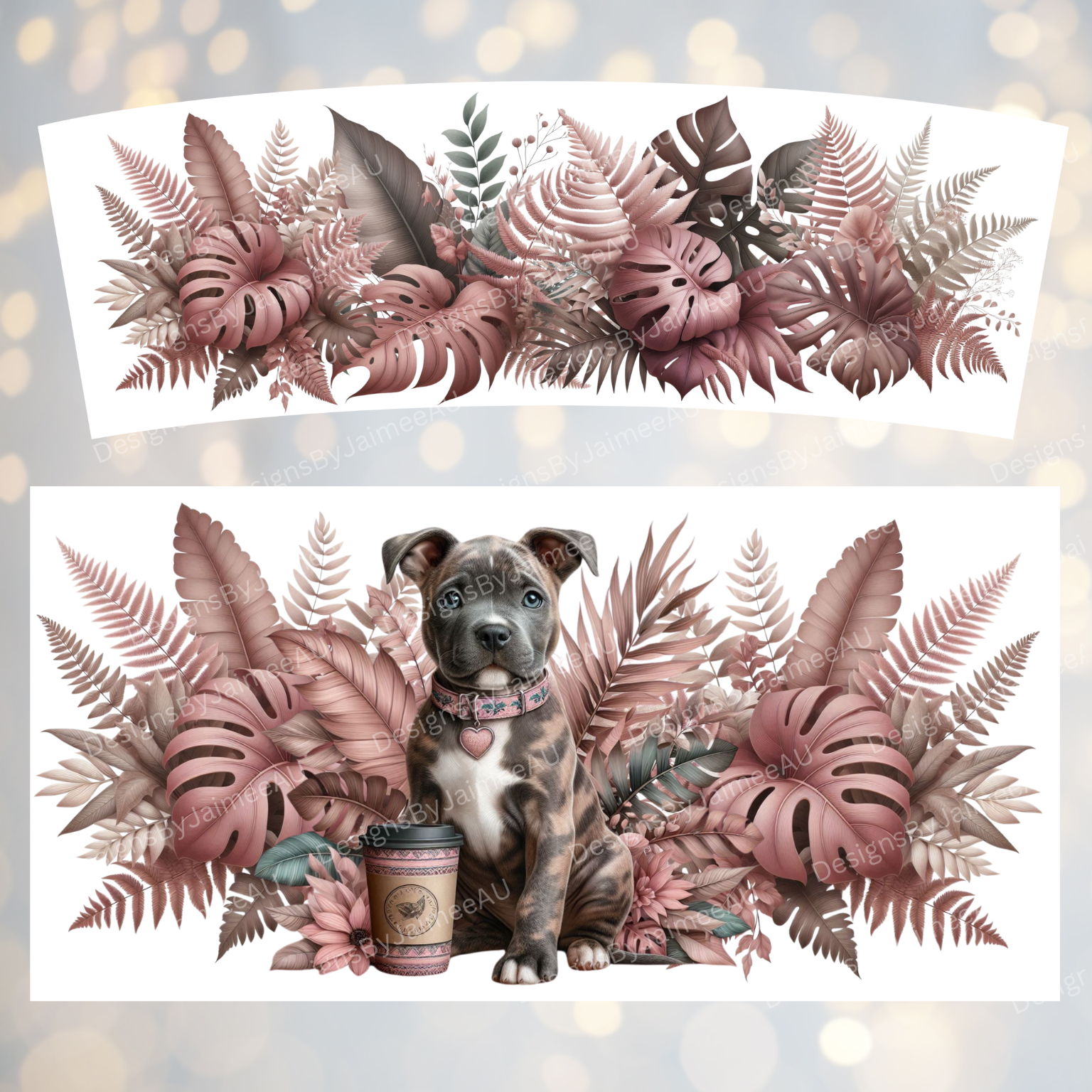 Dusty Pink and Browns "Staffy Mama" Merle Staffy (Staffordshire Bull Terrier) 40oz Digital Sublimation Tumbler Wrap