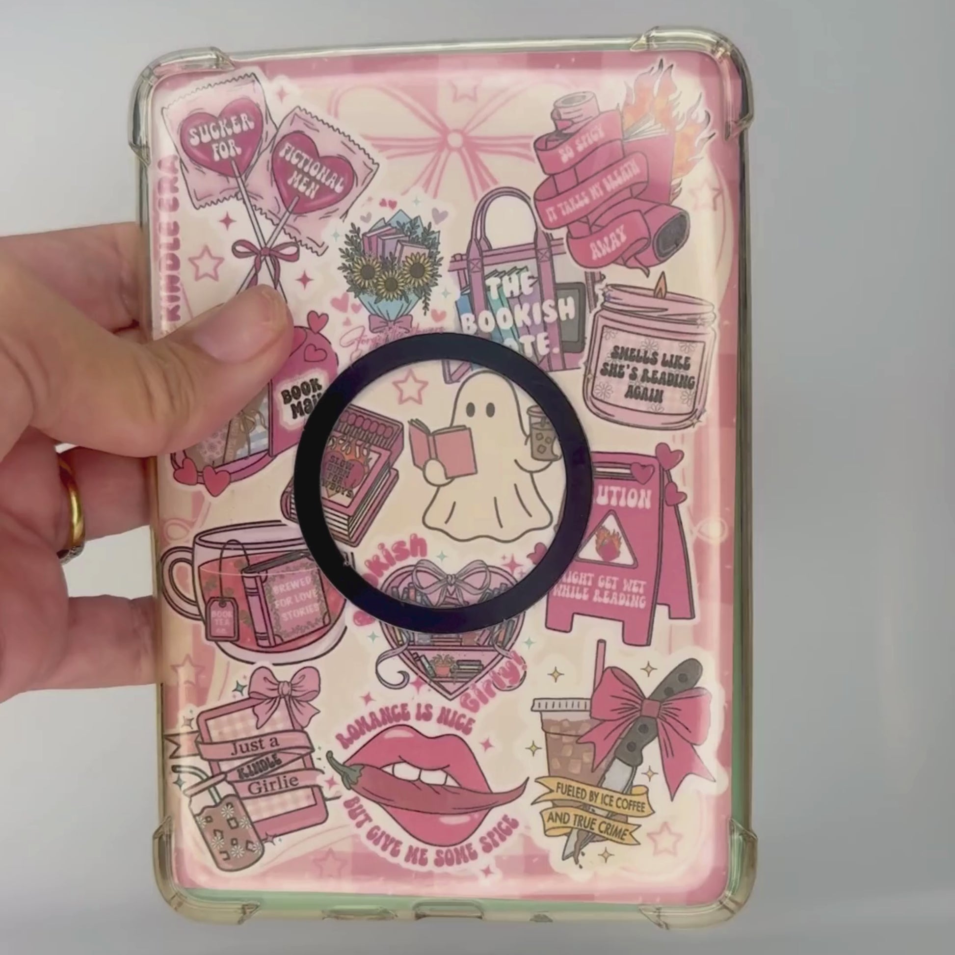 Fueled By Ice and True Crime | E-Reader Magnetic Grip | Interchangeable Bookish Accessory