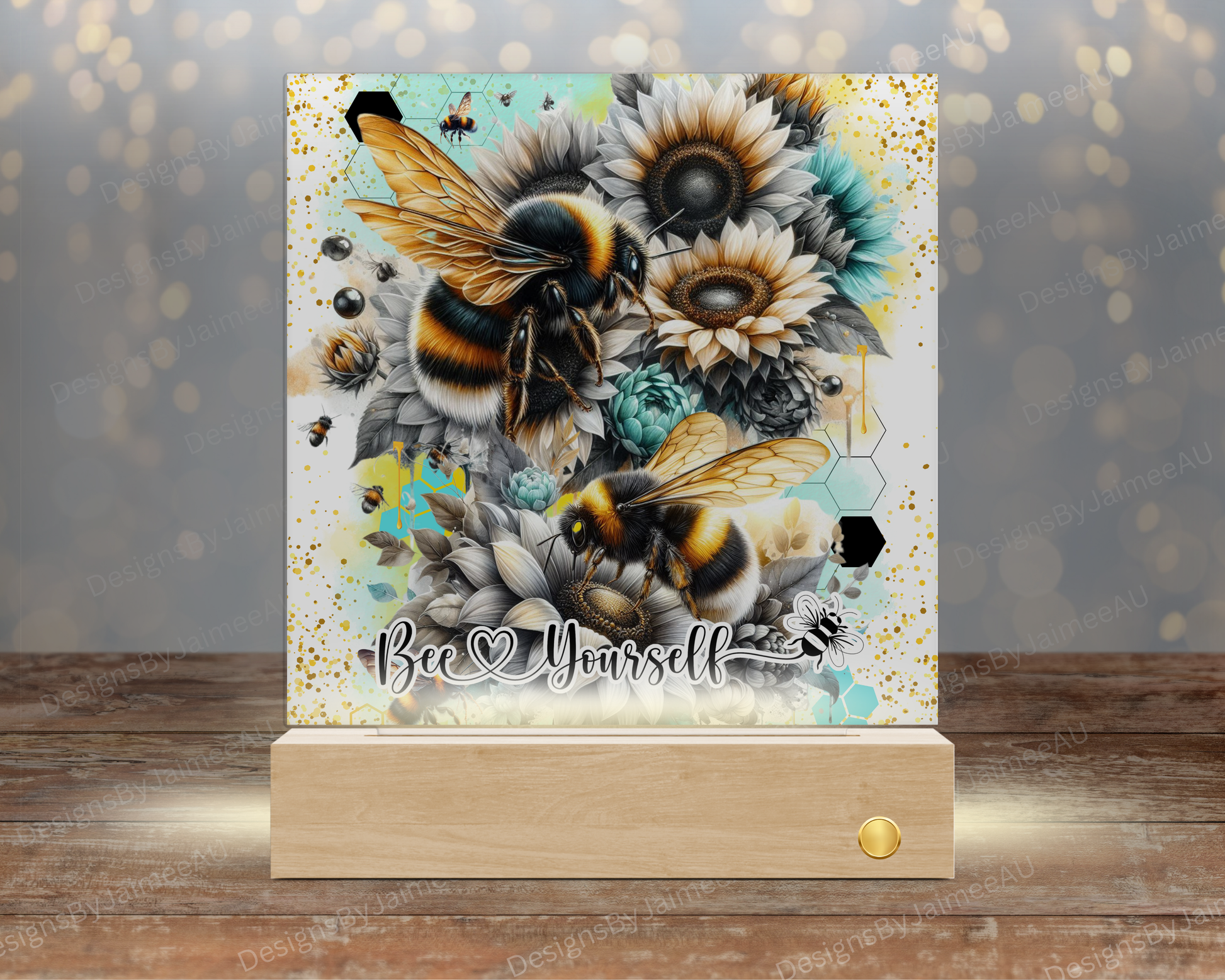 Bee Yourself - Yellow and Aqua Bumble Bee - Digital Sublimation Led Light Design
