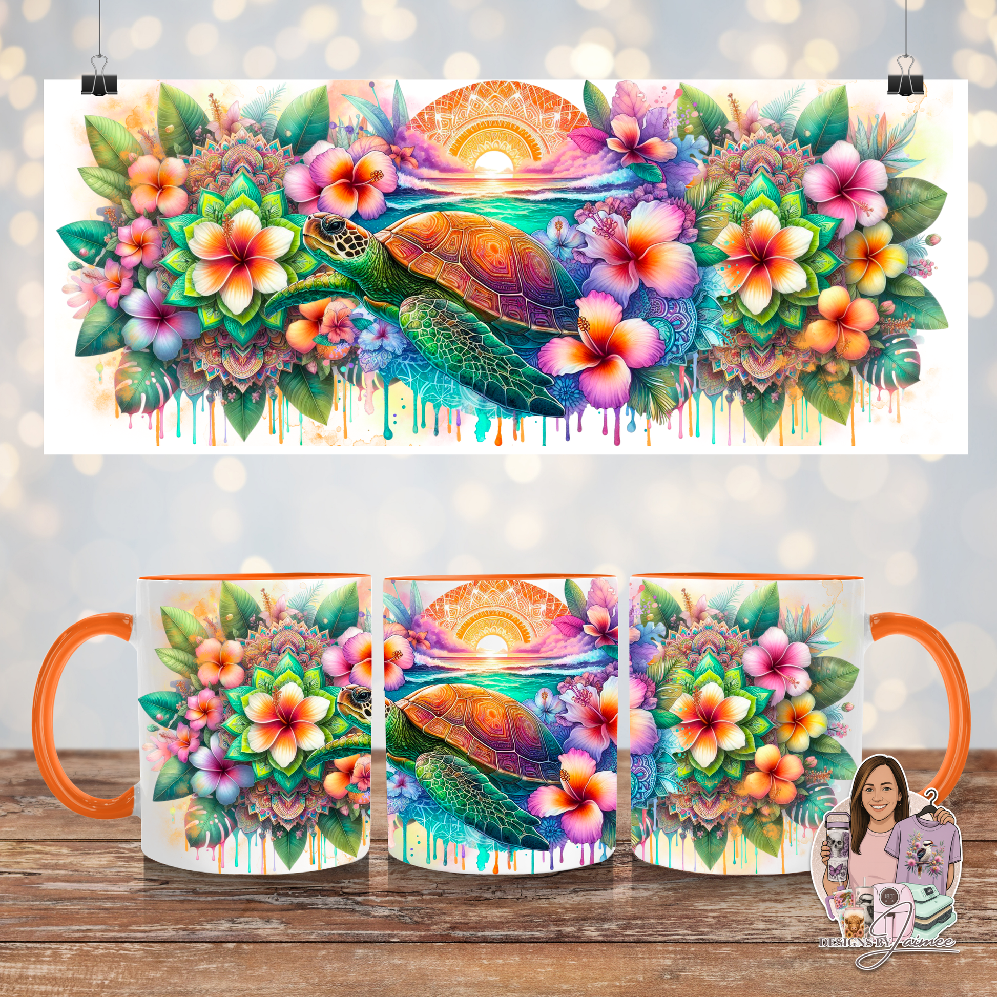 Orange Tropical Turtles - Digital 11oz Sublimation Coffee Mug Design