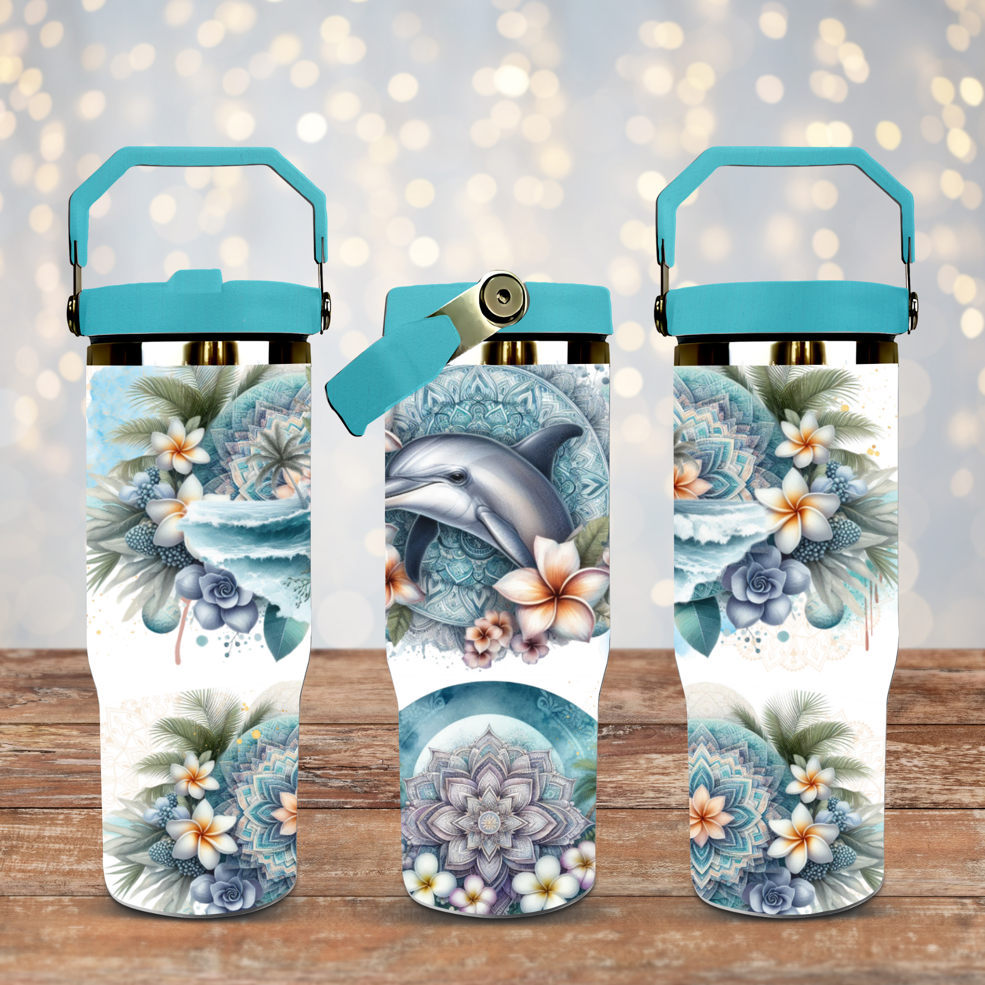 Pastel Watercolour Tropical Dolphin #3 - Digital 30oz Sublimation Tumbler Wrap