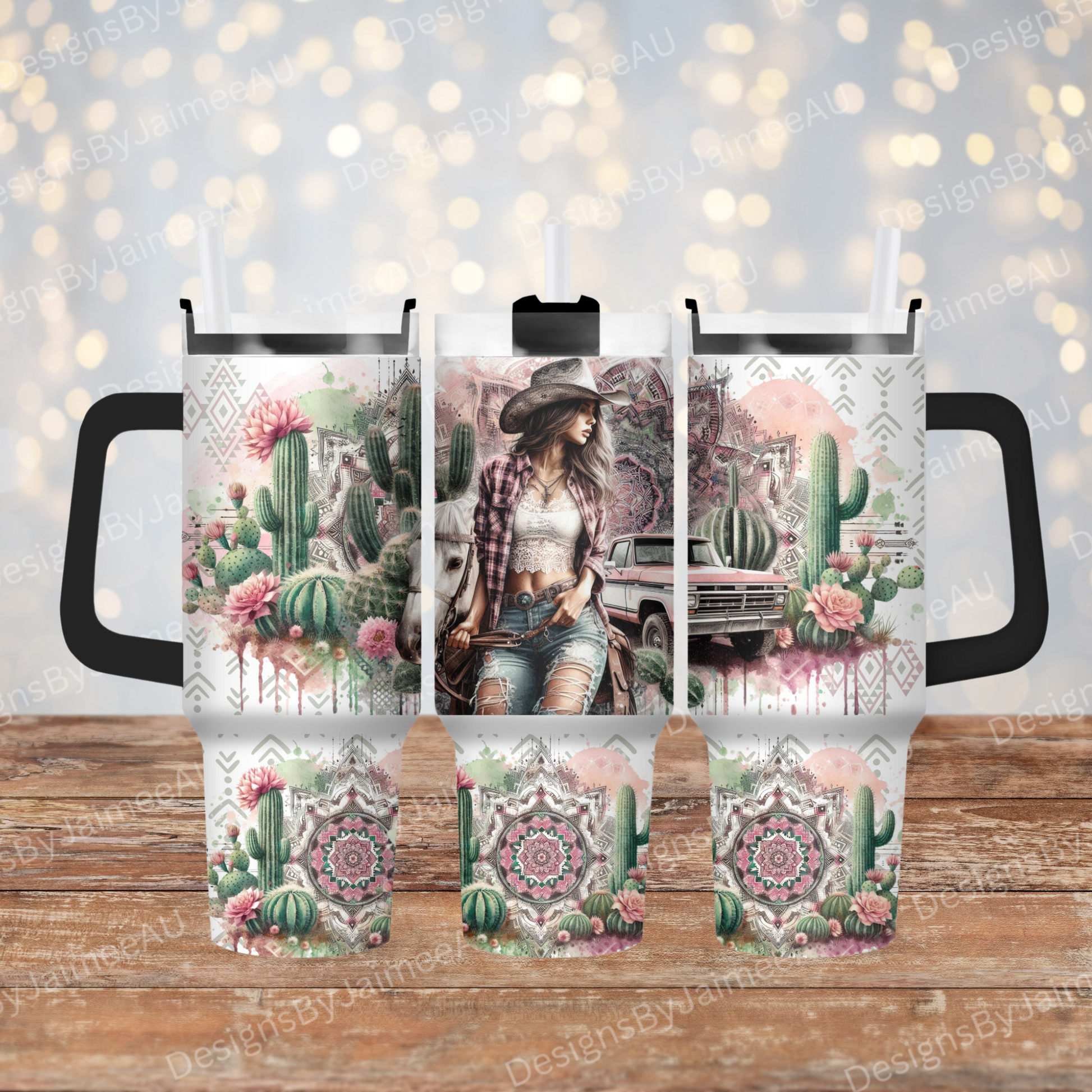 Pink and Green Watercolour Cowgirl 40oz Digital Sublimation Tumbler Wrap