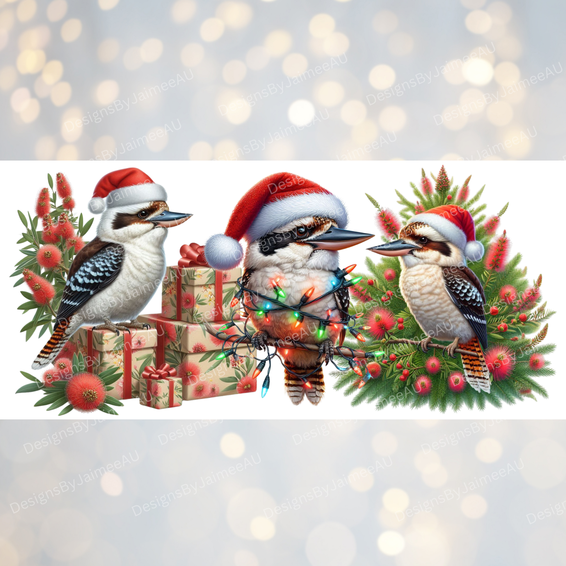 Red and Green Christmas Kookaburras Digital Download 300dpi 16oz UV DTF Transfer Wrap PNG Image
