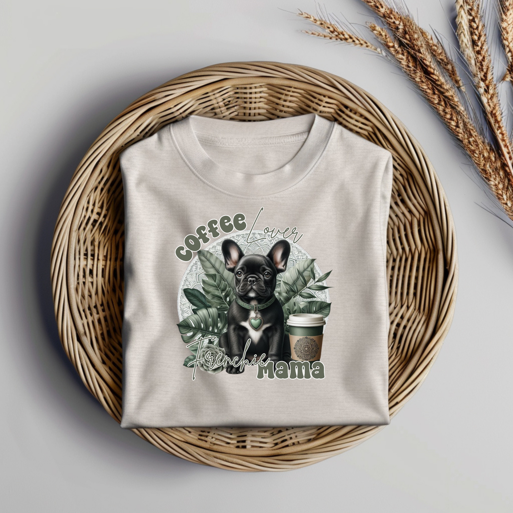 Sage Green Tropical Leaves French Bulldog "Coffee Lover, Dachshund Mama" Digital Download PNG 300dpi DTF Transfer tshirt image
