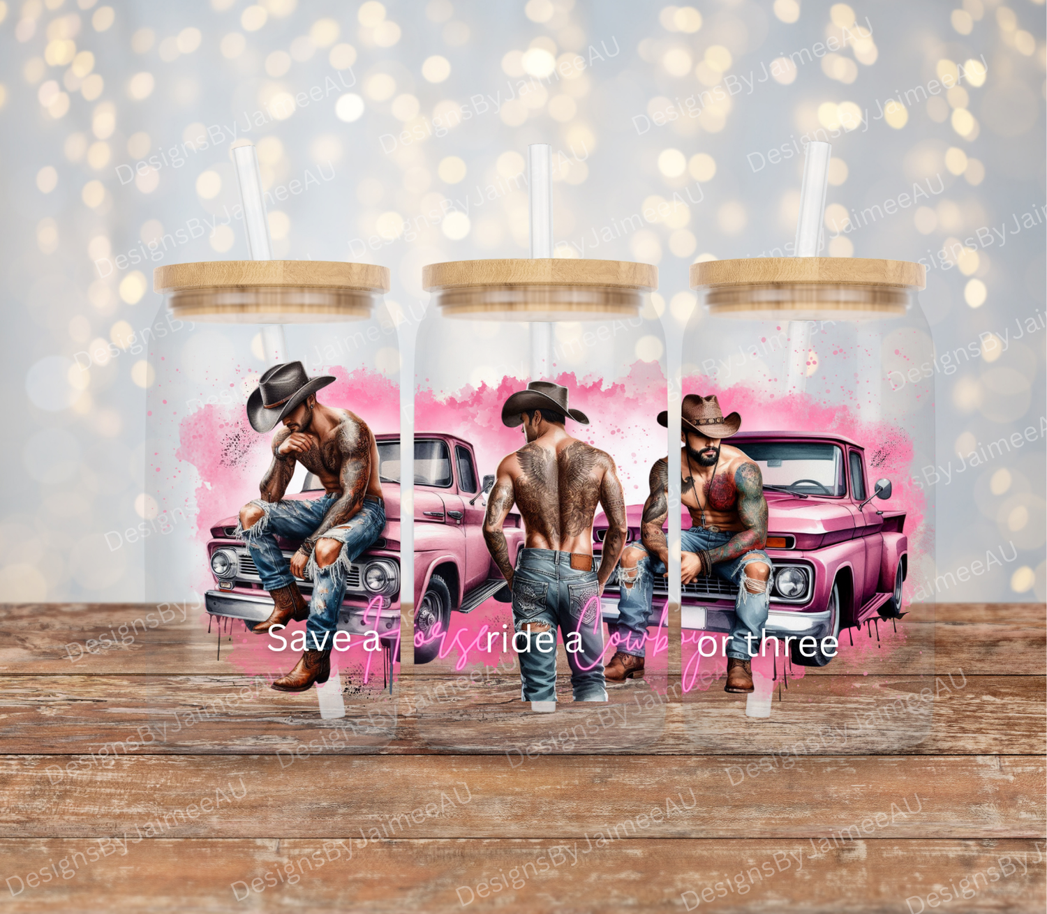Hot Pink Cowboys "Save A Horse and Ride A Cowboy Or Three" Digital Download 16oz UV DTF Transfer Wrap PNG Image Digital Download 300dpi 16oz UV DTF Transfer Wrap PNG Image