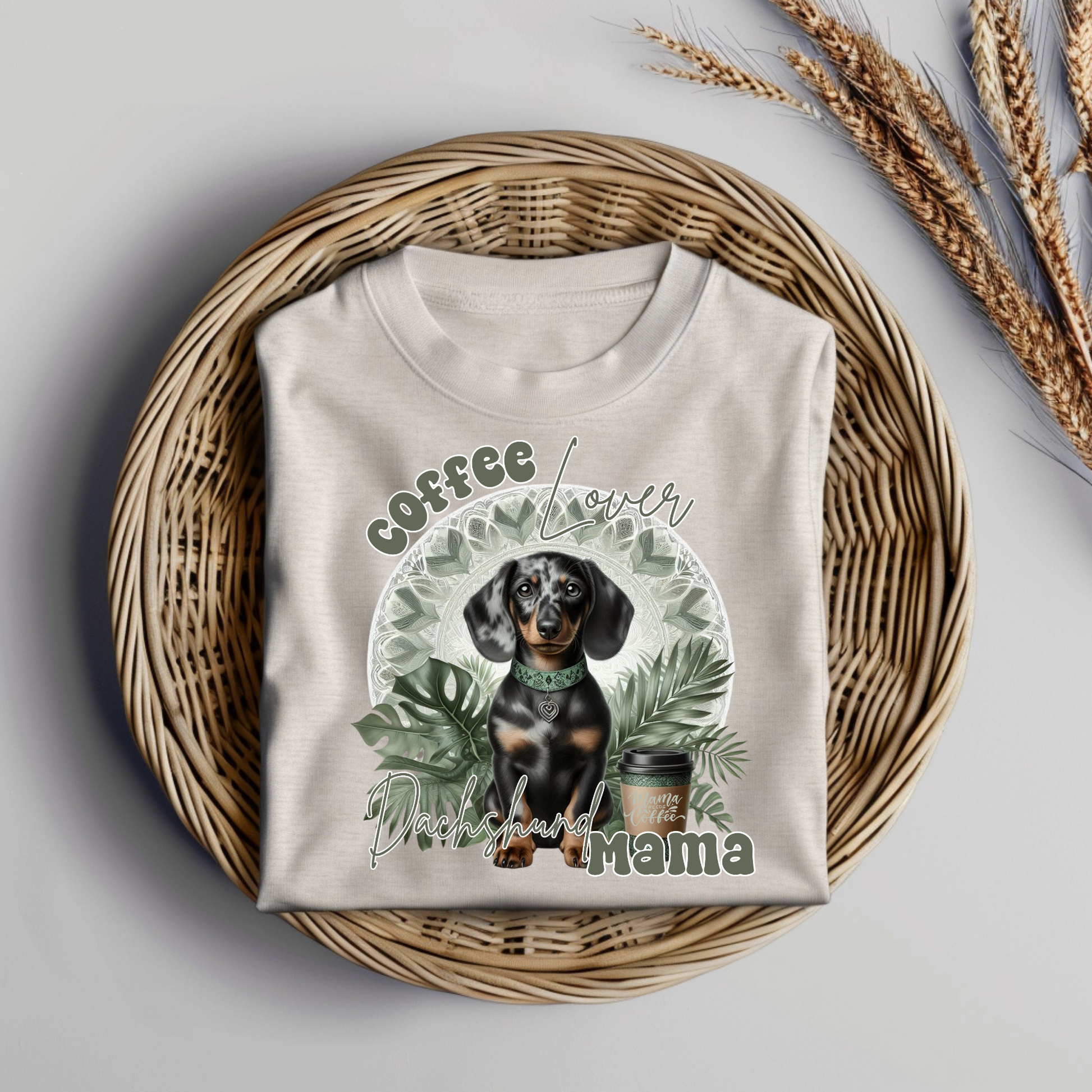 Sage Green Tropical Dapple Dachshund "Coffee Lover, Dachshund Mama" Digital DTF Transfer PNG Image