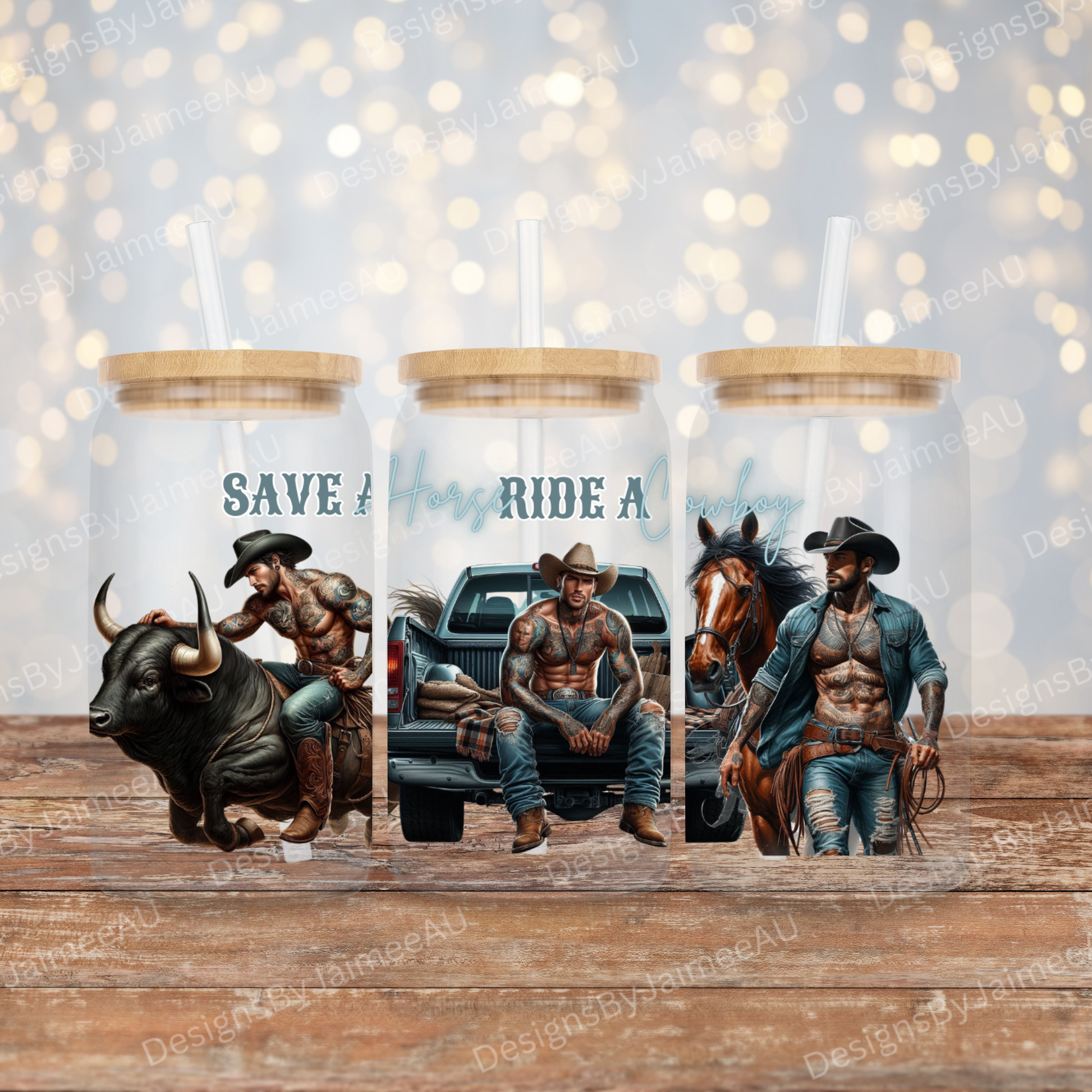 Save a Horse, Ride a Cowboy 16oz UV DTF Transfer Wrap PNG Image