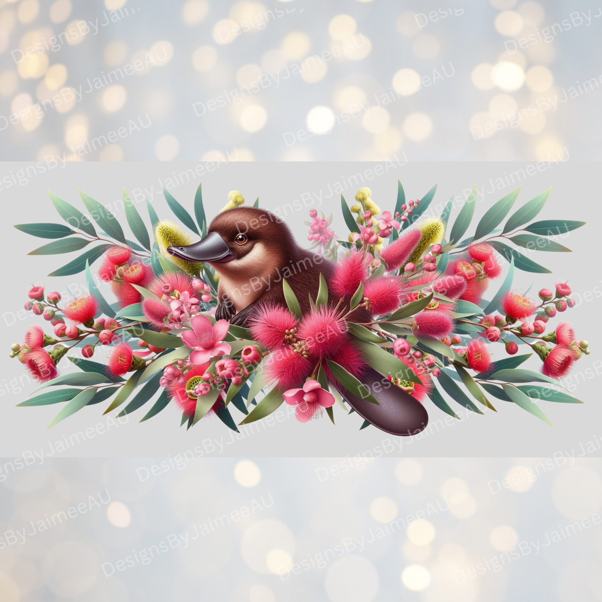 Platypus and Australian Native Flowers Digital Download 300dpi 16oz UV DTF Transfer Wrap PNG Image
