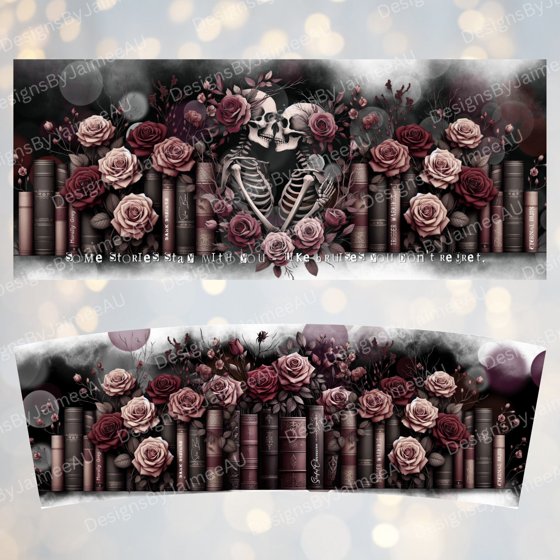 "Some Stories Stay With You - Like A Bruise You Don't Regret" Gothic Skulls, Dark Romance, Booktok - 40oz Digital Sublimation FULL Tumbler Wrap