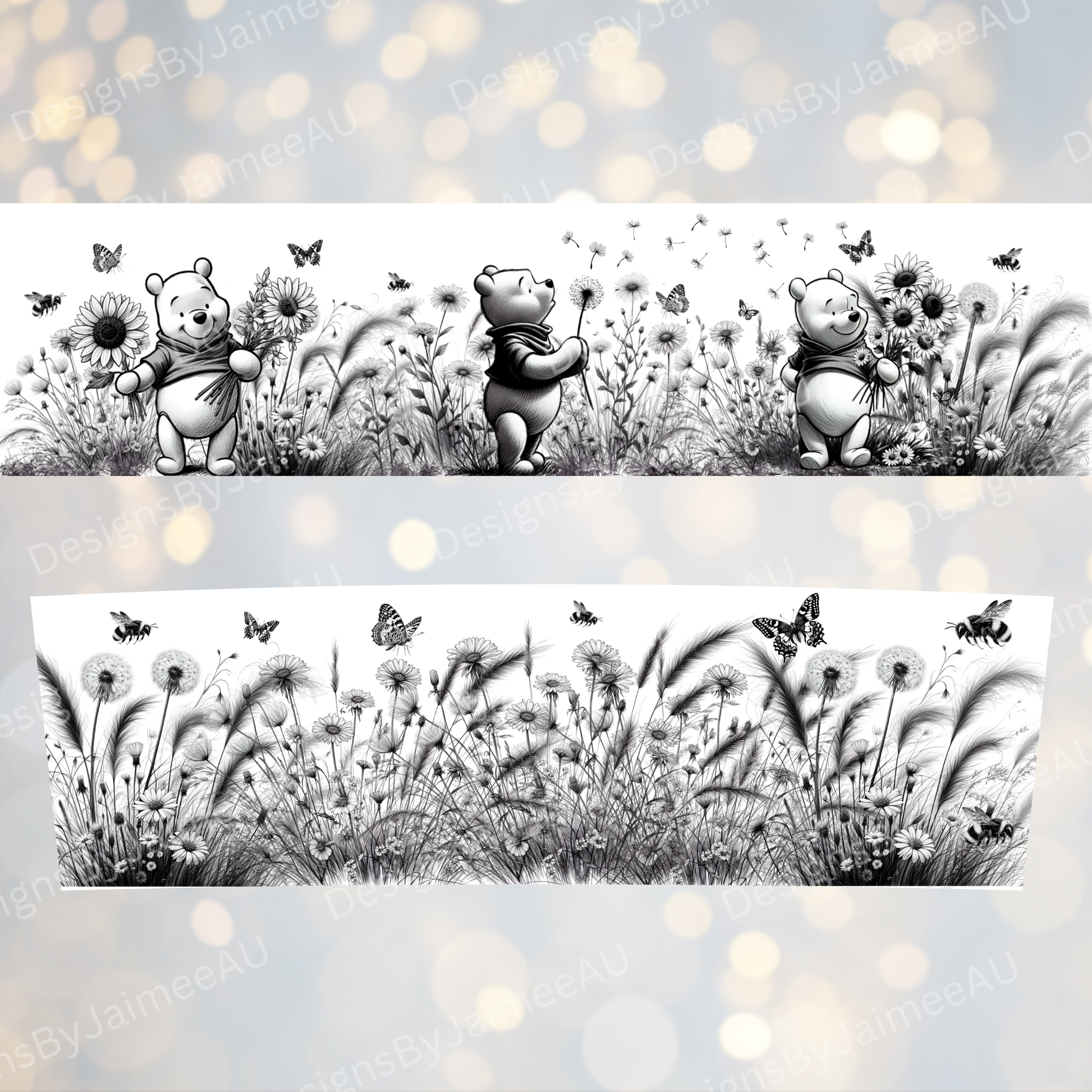 Springtime - Winnie The Pooh -Black and White Line Drawing- Digital 20oz Tumbler with Handle Wrap Design