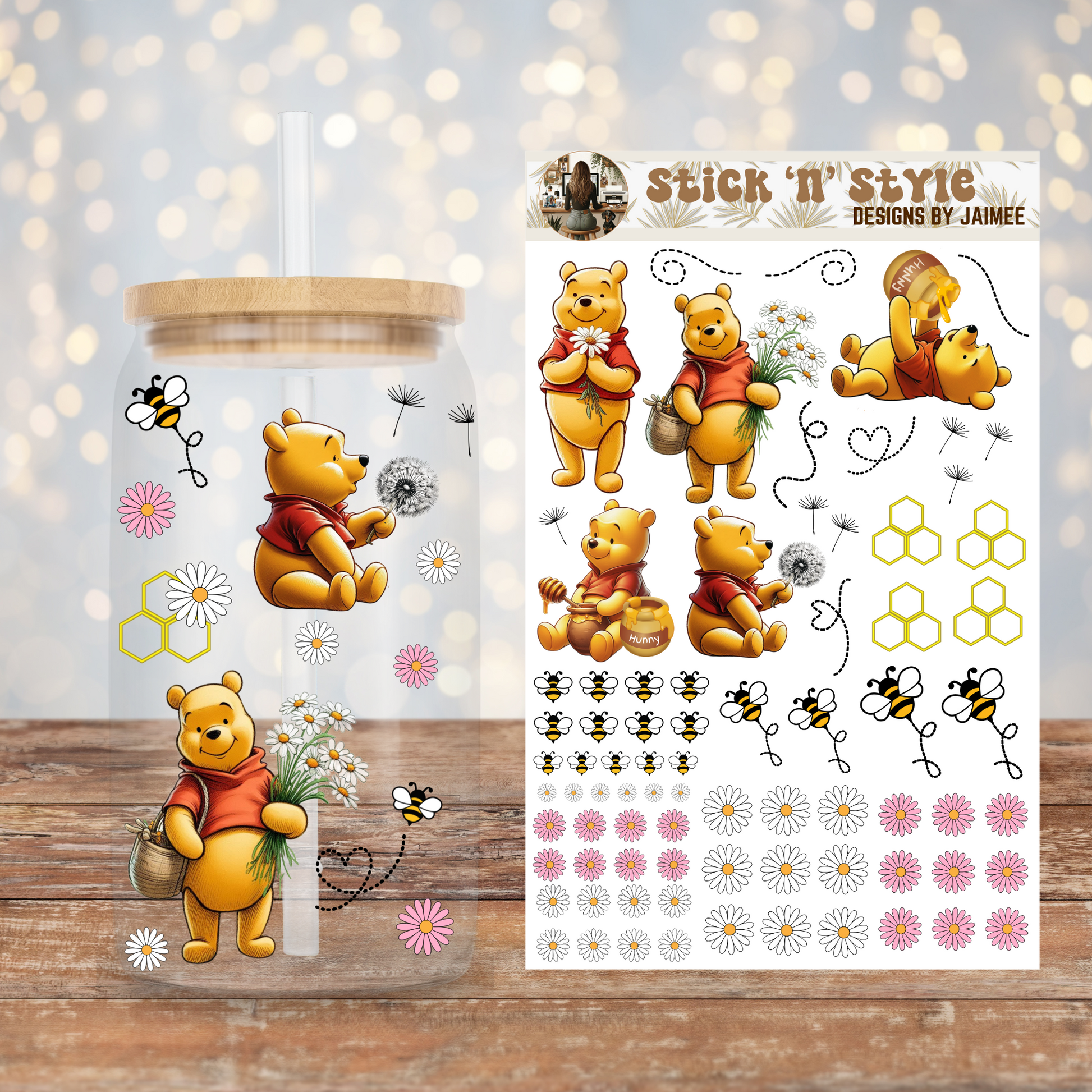Springtime Winnie The Pooh "Stick 'n' Style" UV DTF Sticker Sheets