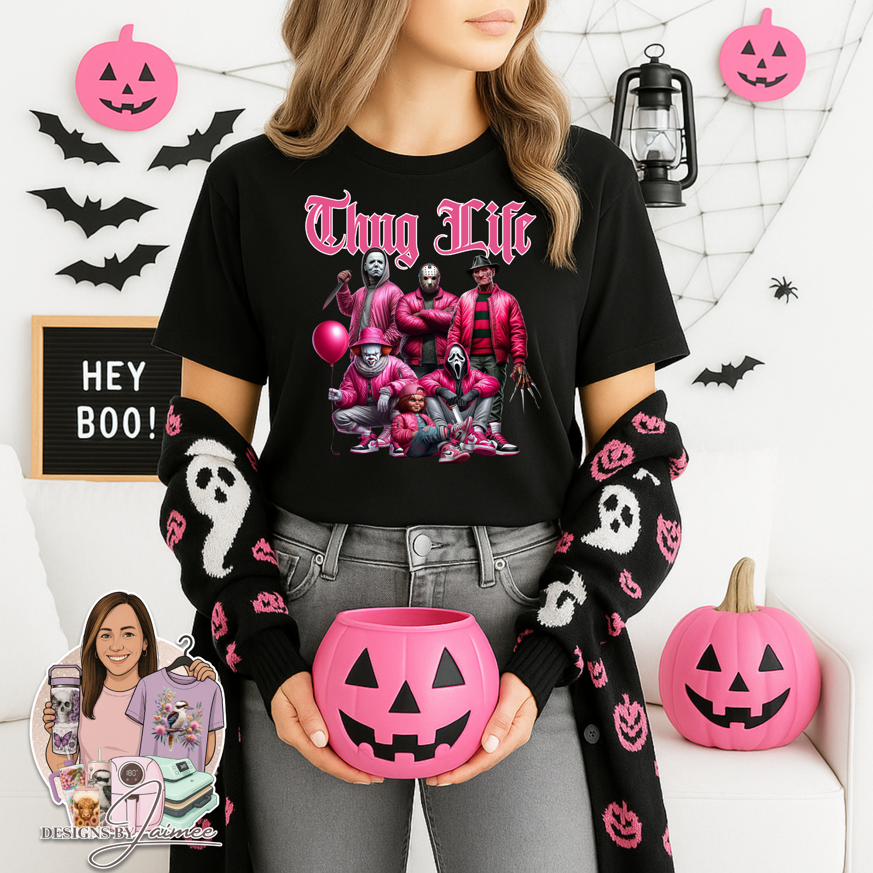 Hot Pink "Thug Life" Hip Hop - Horror Movie Characters Digital DTF Transfer PNG Image