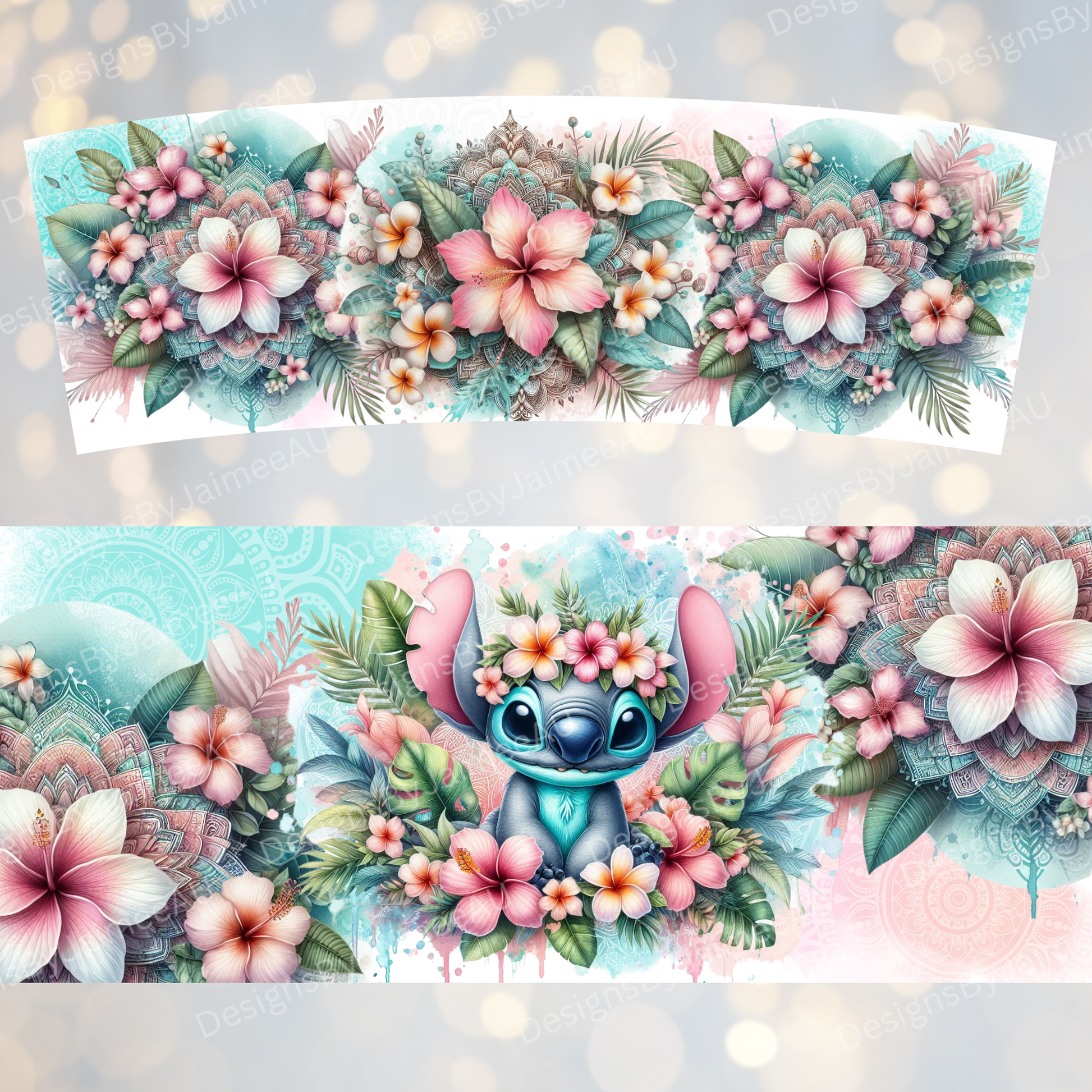 Tropical Stitch - Pink and Aqua - Digital 30oz Sublimation Tumbler Wrap