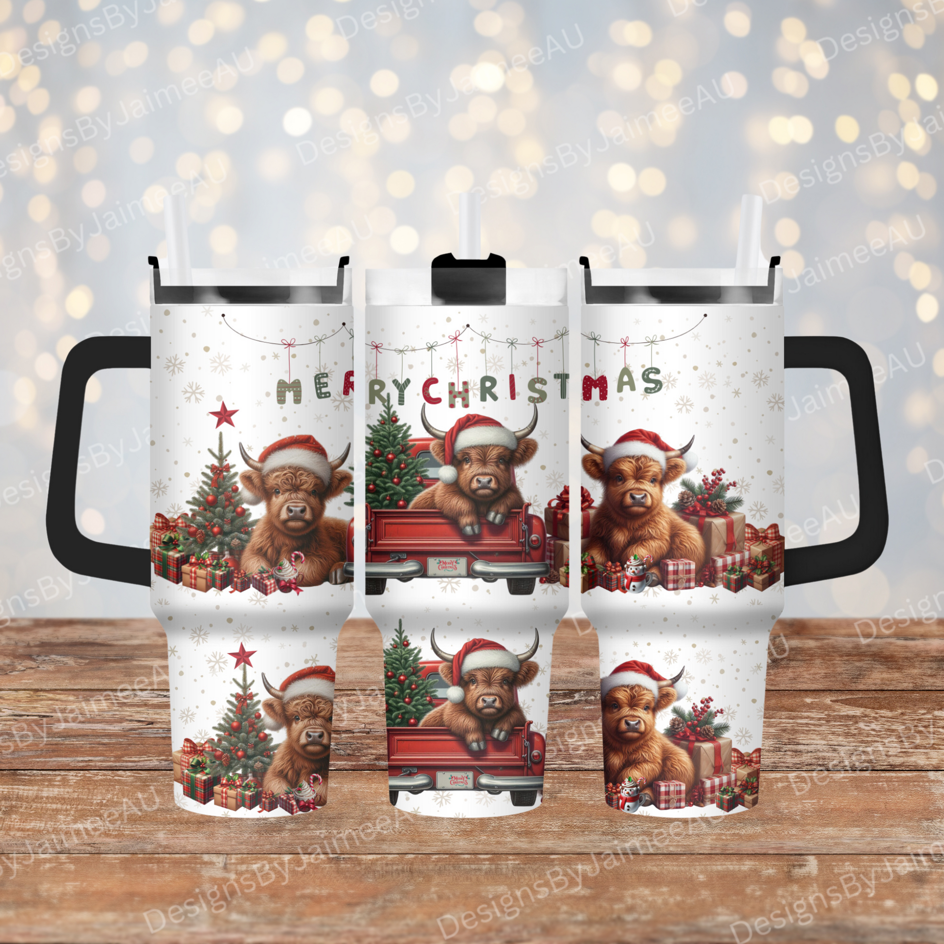 Vintage Christmas Highland Cow 40oz Digital Sublimation Tumbler Wrap